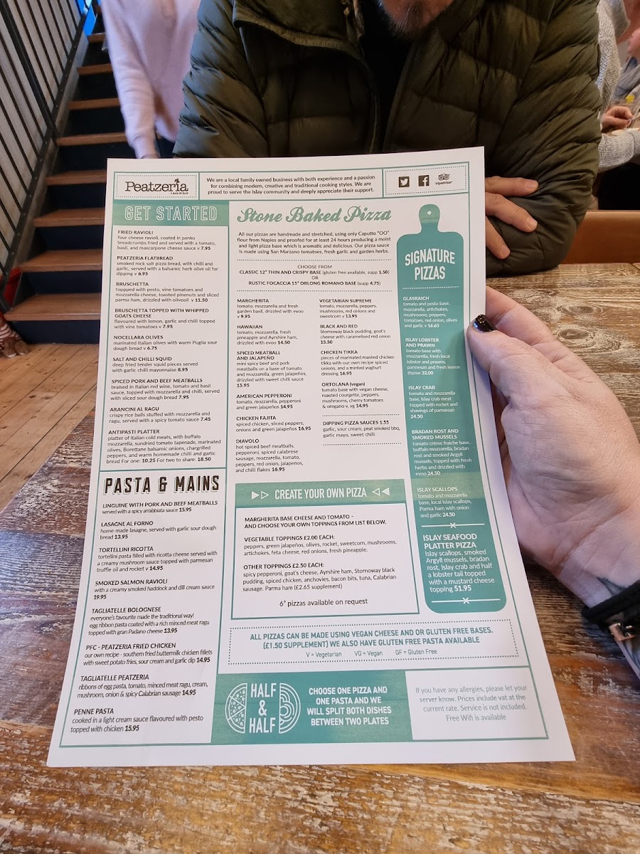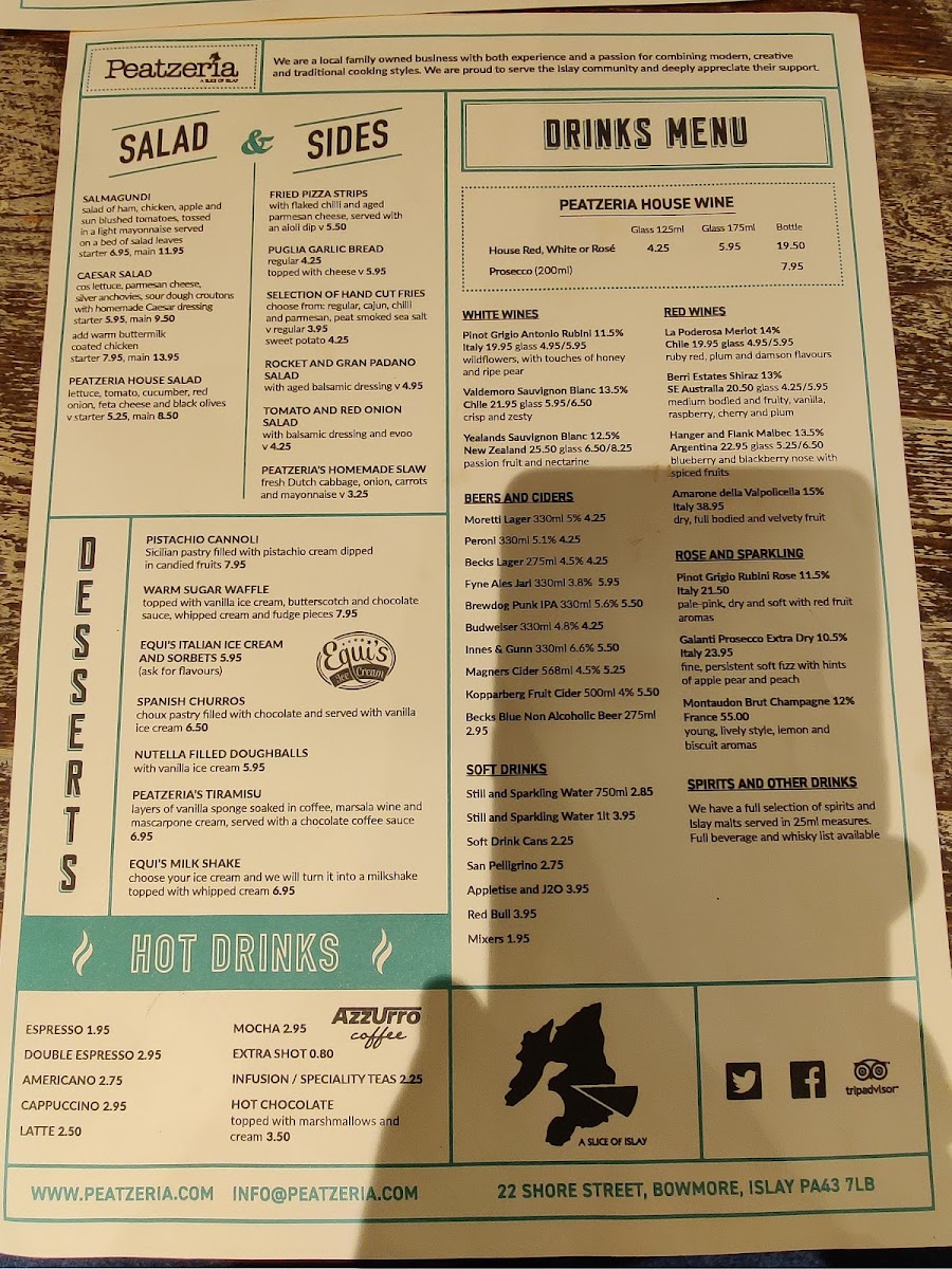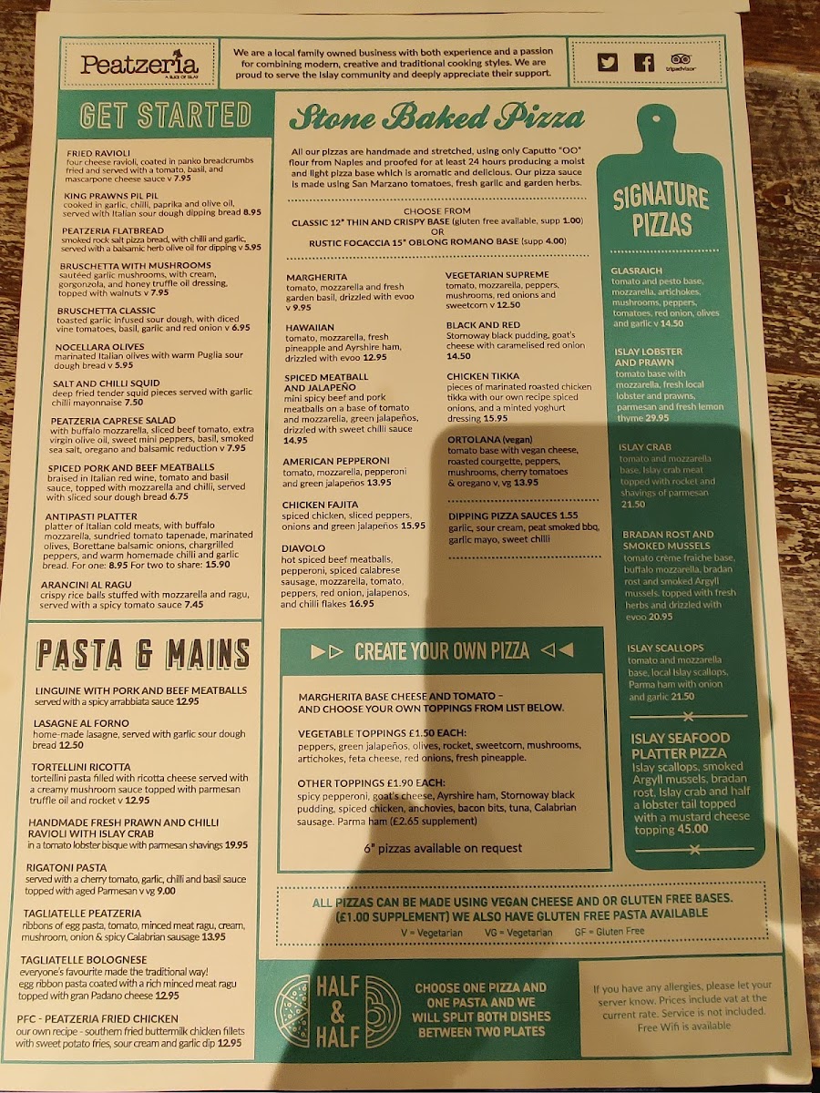 Welcome to Peatzeria - Restaurant and Takeaway, located at 22 Shore St, Bowmore, Isle of Islay. This charming eatery specializes in authentic pizzas and delectable pasta dishes, making it a must-visit for food enthusiasts. The menu features a delightful variety of starters, including King Prawn Pil Pil and Panko Breaded Deep Fried Lasagne, with mains that wow with unique options like the Islay lobster and prawn pizza.
